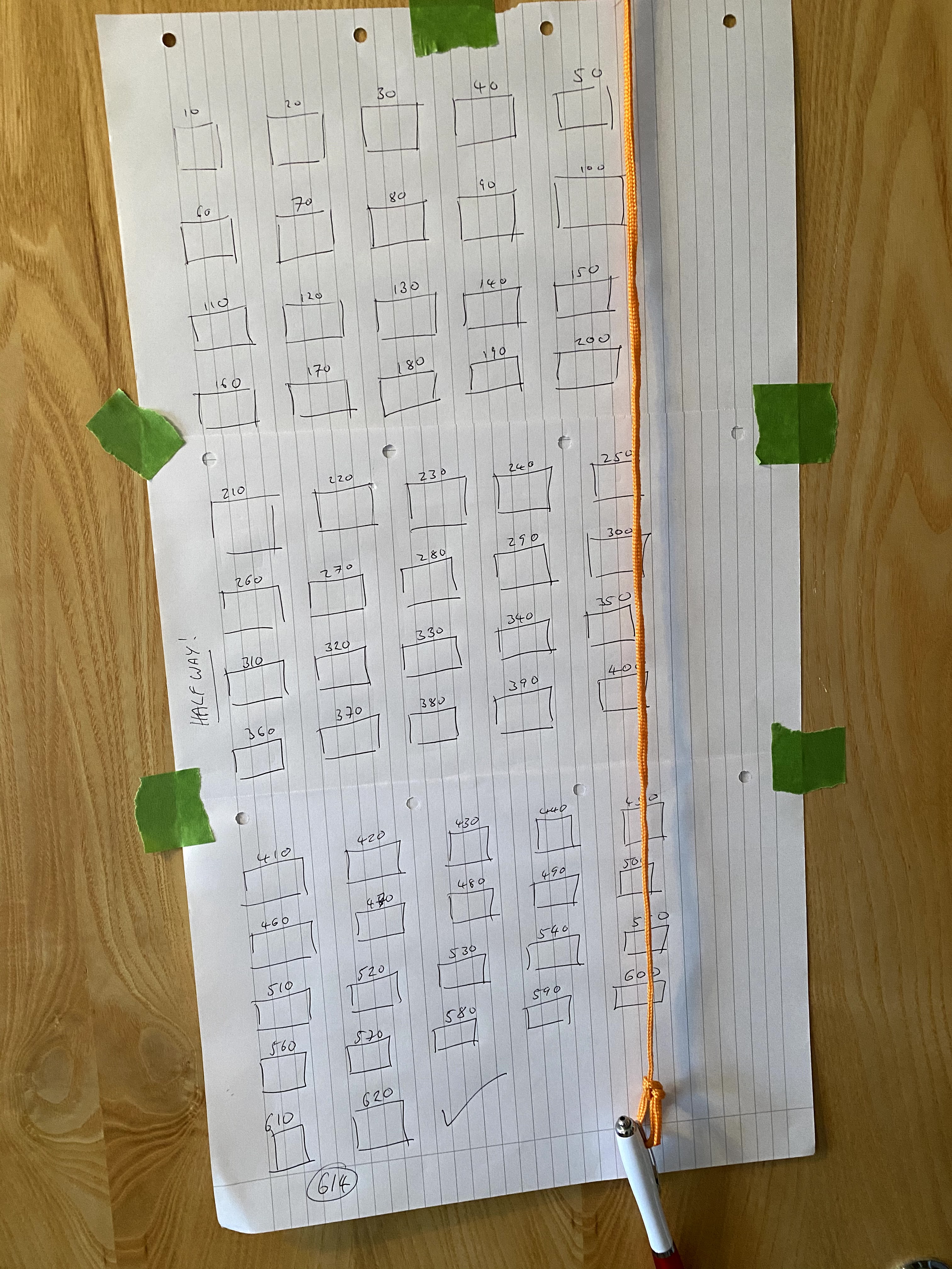 So a draw 62 boxes, each box will be crossed off after every 10 laps.